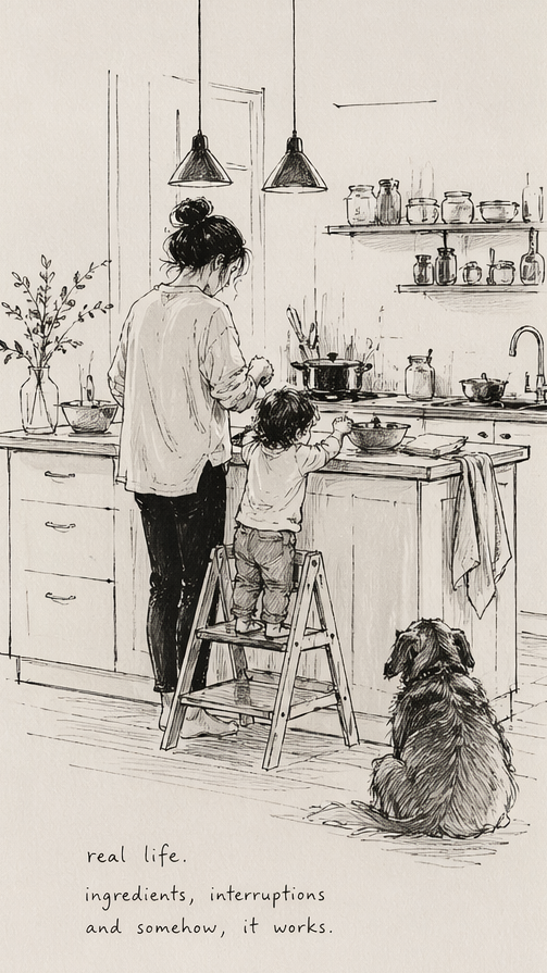 Not from perfection, but from the meeting point of aesthetic instinct and real life structure.